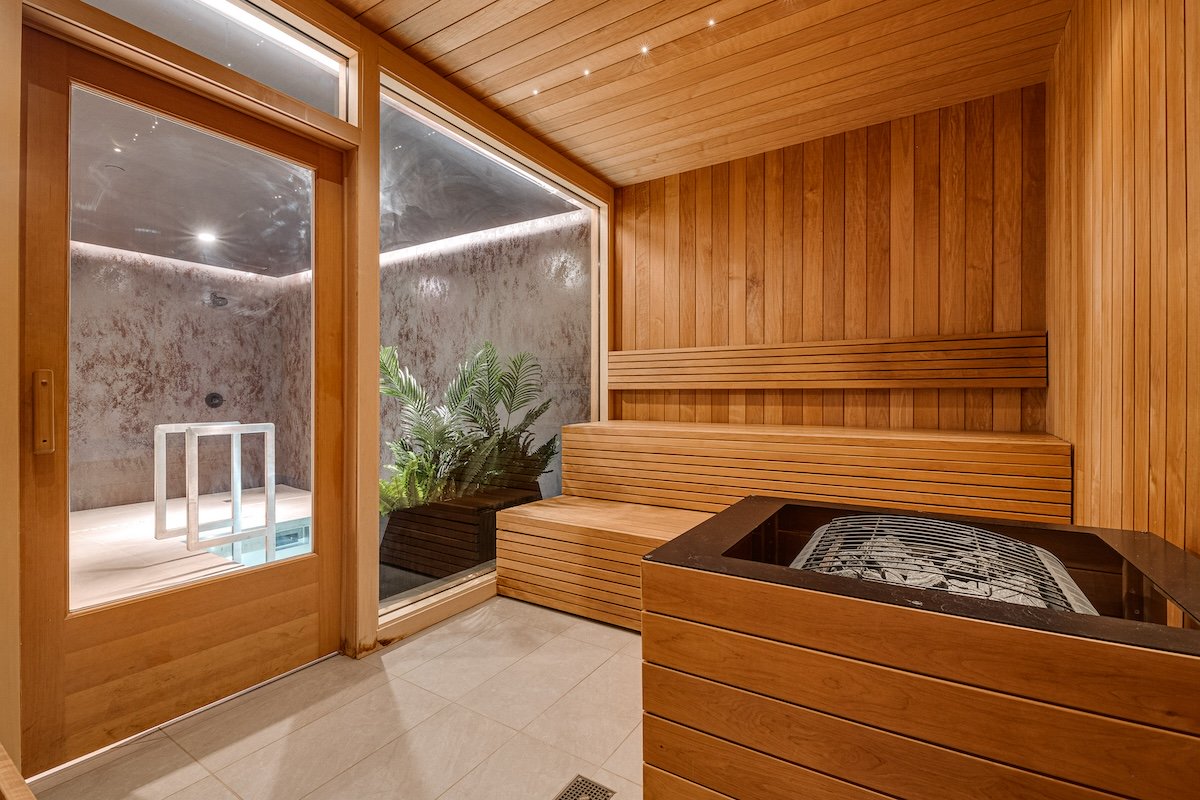A significant aspect of this project was the extensive use of hard tile, featured on the floors throughout the entire space, as well as on the walls of private rooms, showers, the main lounge, and front check-in desk. This project also marks our first ever installation of in-ground cold plunges, demonstrating our commitment to tackling specialized construction challenges.